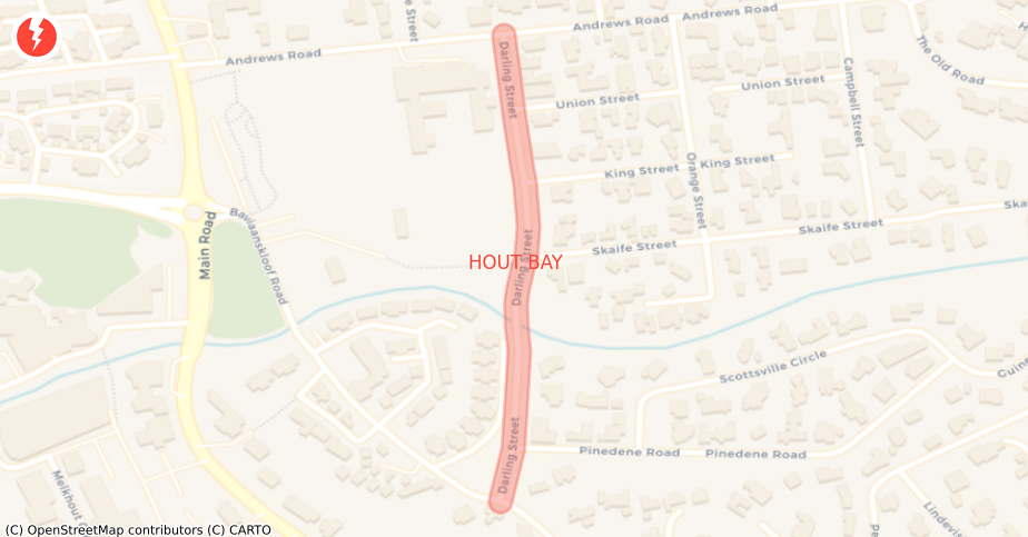There is a water outage in Darling Street, Houtbay, which could also be affecting the surrounds. The department is attending to this. Additionally, there is unplanned maintenance due to a burst pipe in Hout Bay, Hout Bay.